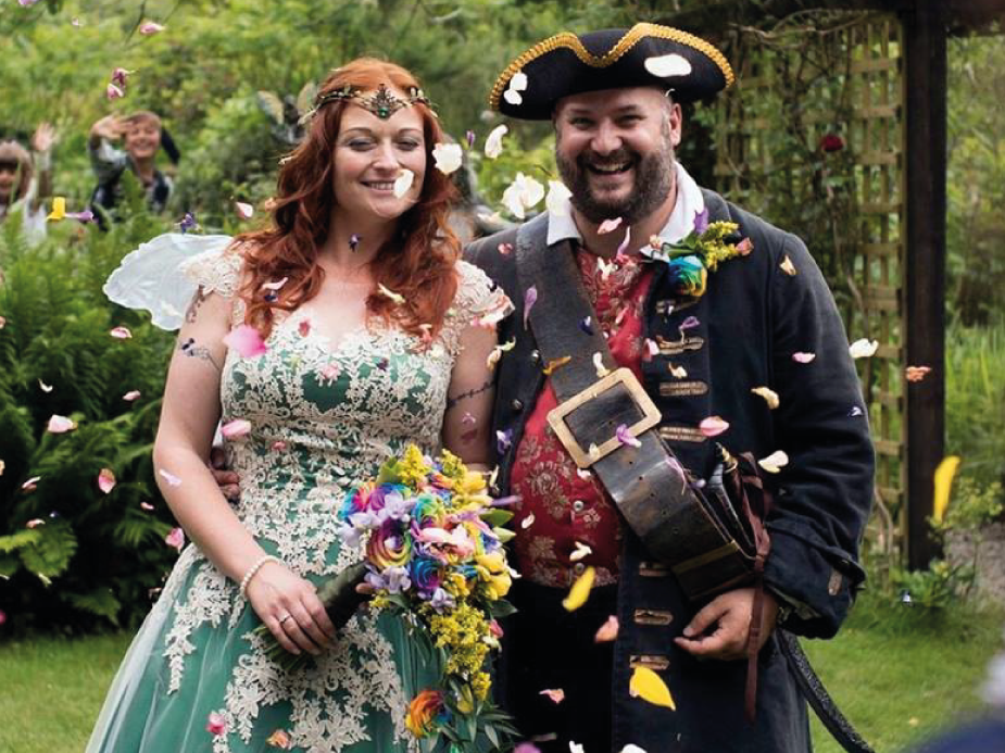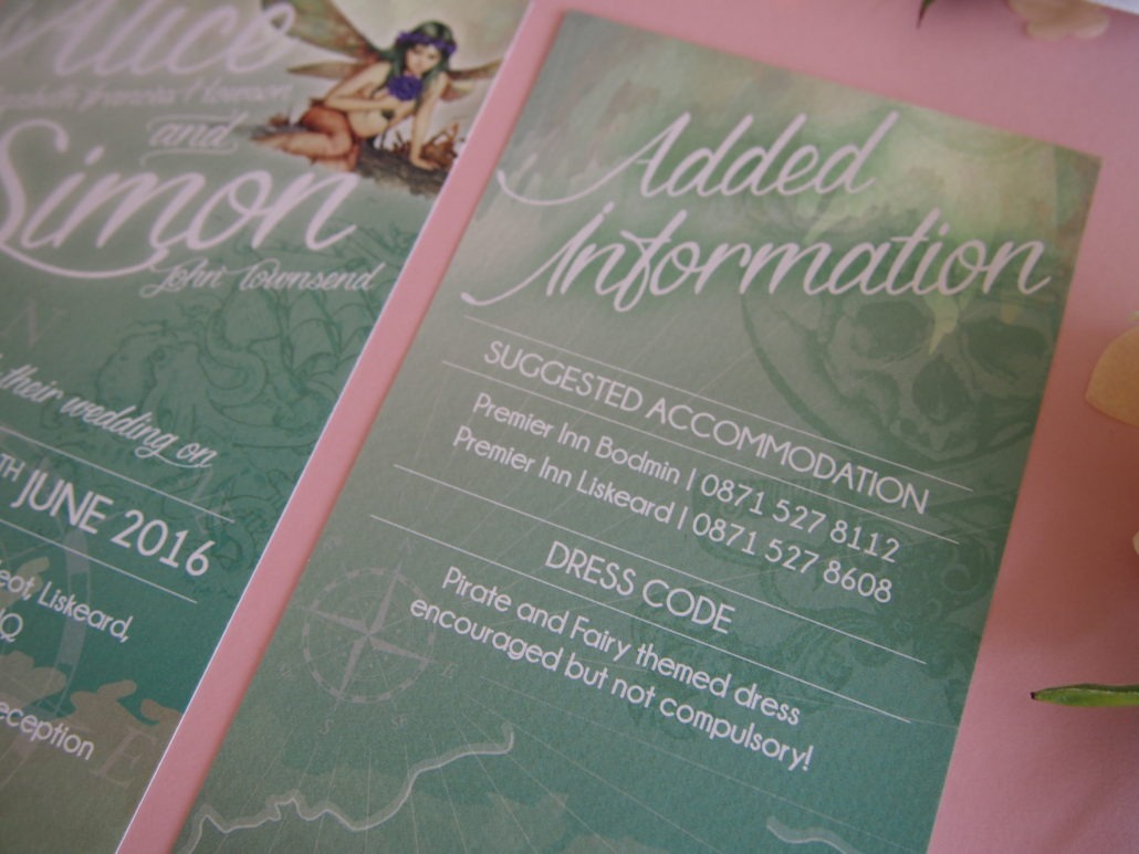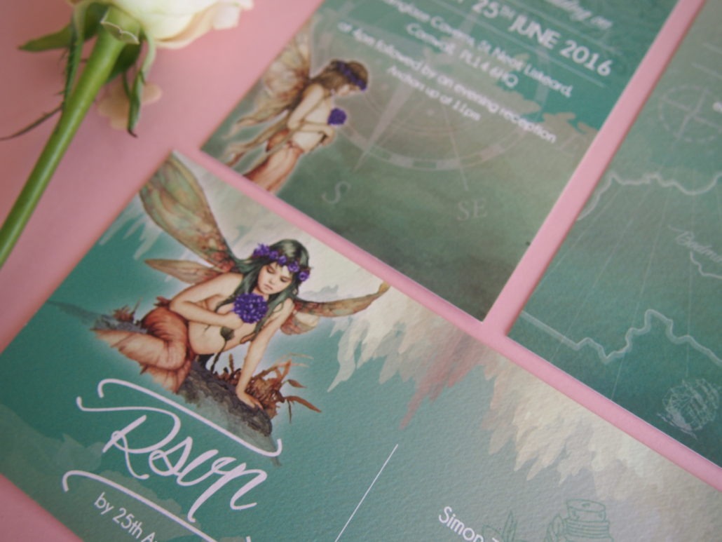 Alice & Simon briefed Ivy White to create something to suit their pirate and fairy themed wedding that was taking place in a cavern in Cornwall! They had asked for images of fairies with pirate themed touches and wanted them to include a green and purple colour palette. Such a fun project to work on.